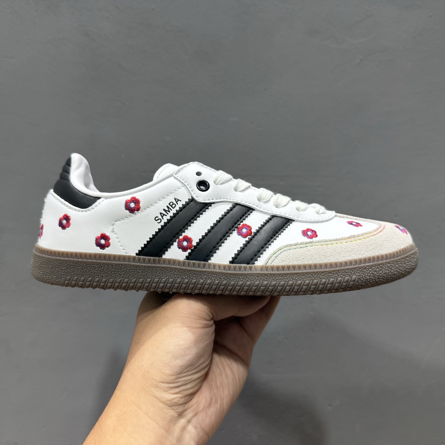 阿迪达斯 德训女鞋 ADIDAS ORIGINALS SAMBA OG SHOES 经典运动鞋小白鞋「T头鞋」女板鞋 鞋面刺绣花朵 彰显休闲摩登风情的时尚经典鞋。它诞生于50年代的足球场,随后走向街头和秀场。采用皮革织物拼接鞋面,搭配橡胶外底,舒适休闲。含锯齿三条纹和别致T形鞋头,致敬Samba的传统设计。缀低调烫金细节 常规版型 系带设计 皮革鞋面 织物衬里 橡胶外底。