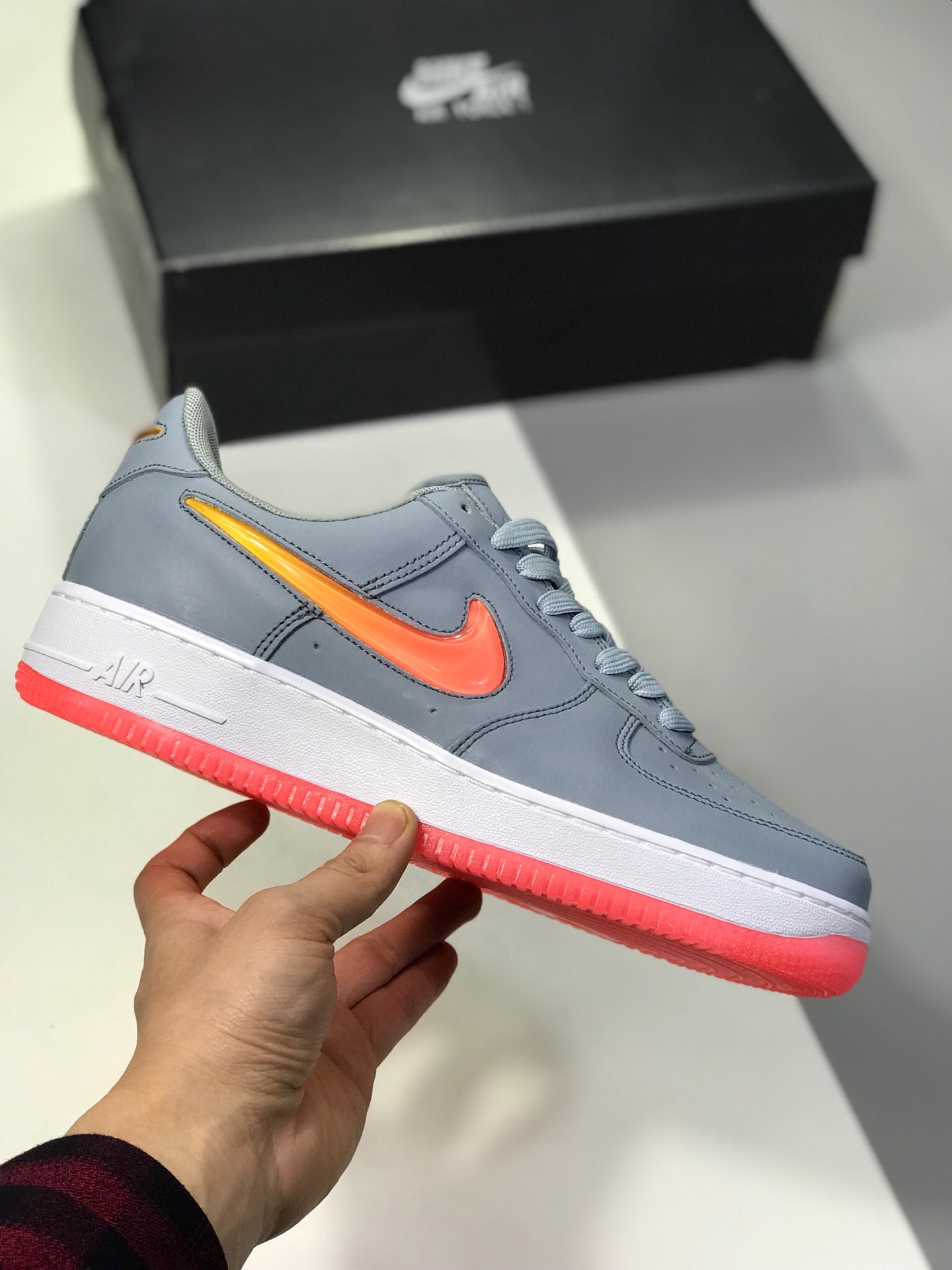 150。 原价:190新版本纯原勾。头层空军果冻NIKE AIR FORCE 1 AF1 空军一号果冻男子低帮板鞋 AH6827-100
