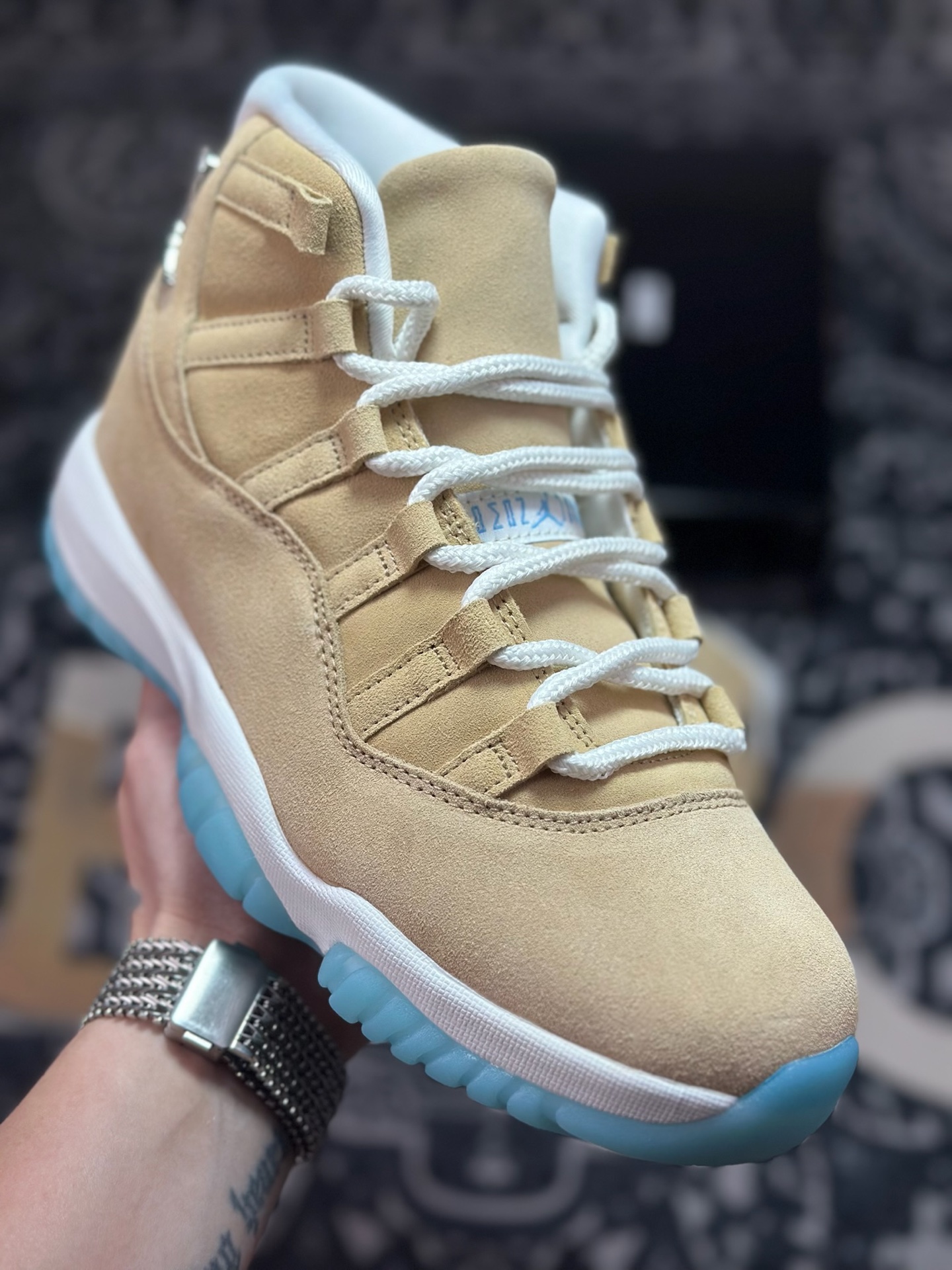 原厂版 Air Jordan 11 Retro “H-TOWN” AJ11 北美限定 时尚舒适 防滑耐磨 高帮 复古篮球鞋 男款 白蓝 卡其麂皮 IO8960-707