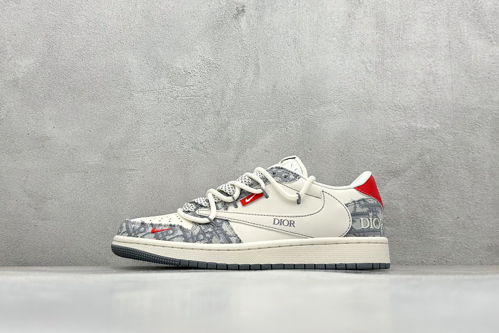 Travis Scott x Fragment Design x Air Jordan 1 Low SP AJ1 乔1 迪奥联名 米灰牛仔布红标 低帮文化休闲板鞋 HT5088-602