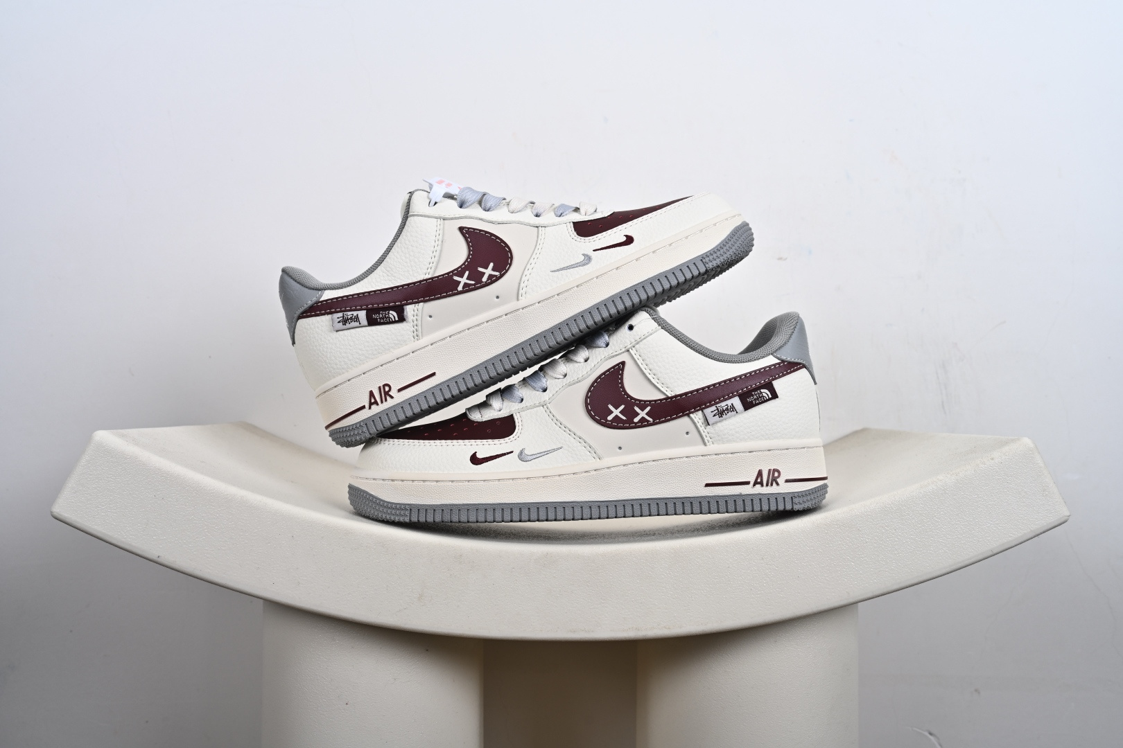 Nike Air Force 1 ’07 Low “斯图西联名 北面联名——米灰红小双勾”空军一号 高端定制 低帮 运动鞋 QW5606-268
