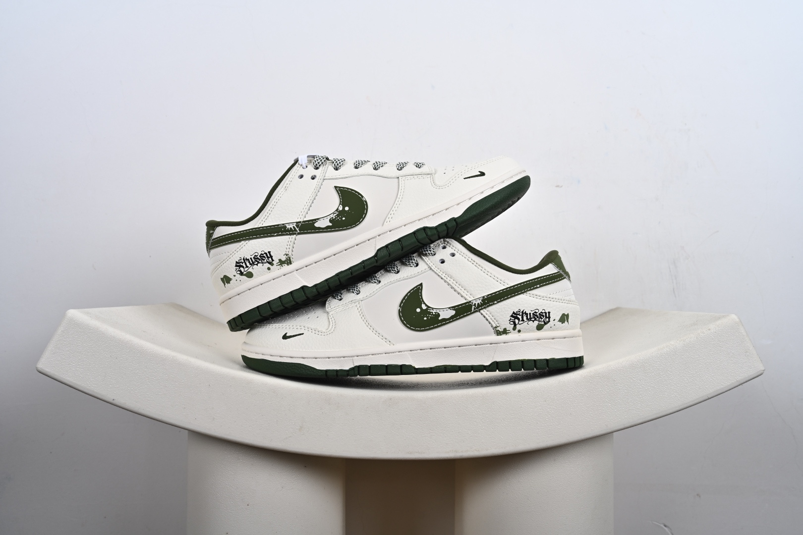 定制版Nike SB Dunk Low 斯图西联名 泼墨绿勾 周年高端定制 低帮休闲板鞋 XS6089-608