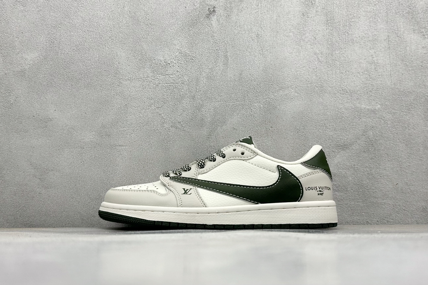 Travis Scott x Fragment Design x Air Jordan 1 Low SP AJ1 乔1 LV联名 米白军绿树纹 低帮文化休闲板鞋 JW1188-150